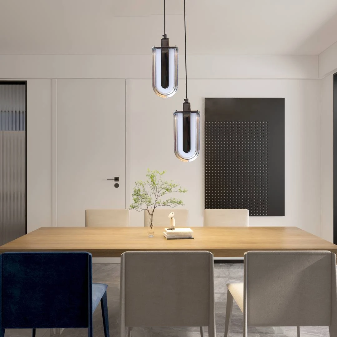 ثريا معلّقة بتصميم مودرن أنيق وإطار معدني قوي يمنح الغرفة لمسة فاخرة ومظهرًا احترافيًا. مثالية لإضاءة وتعزيز ديكور الصالونات، غرف الطعام، الممرات أو المكاتب المنزلية.