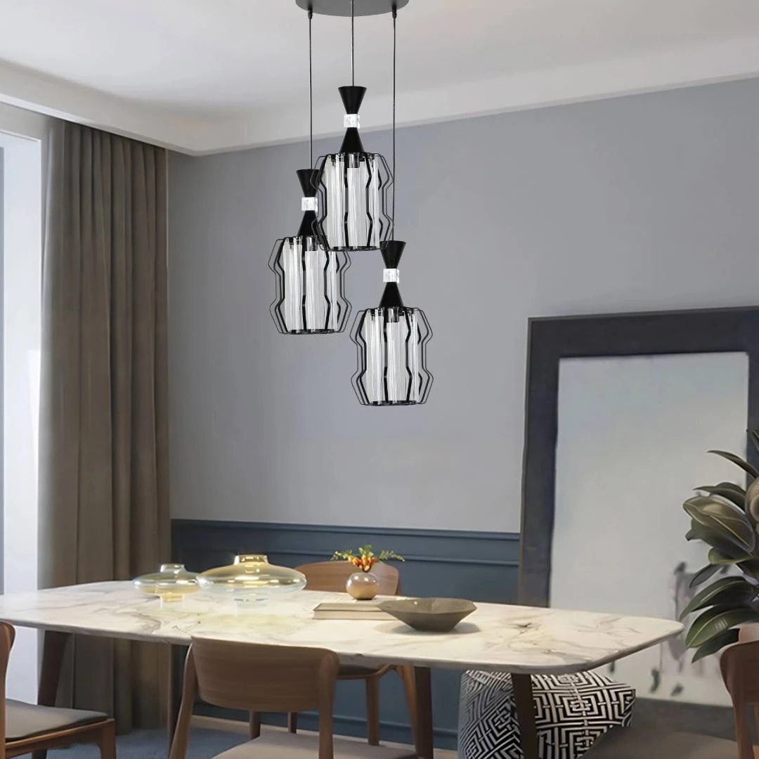 Modern black pendant chandelier with three E27 bulbs