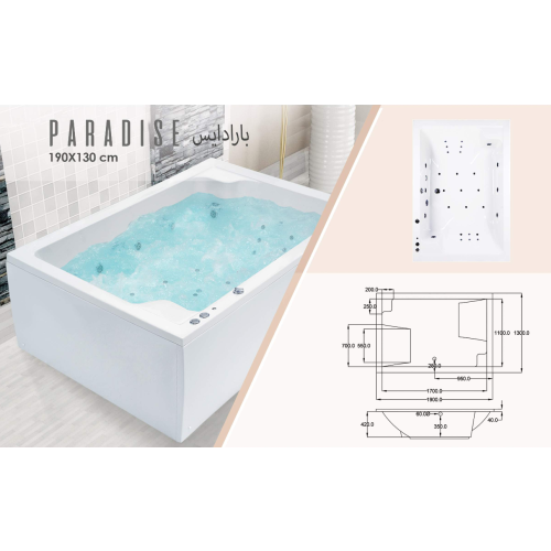 جاكوزي بارادايس متكامل المواصفات — 190×130 سم — صناعة بحرينية بمكونات نمساويةجاكوزي بارادايس متكامل المواصفات — 190×130 سم — صناعة بحرينية بمكونات نمساوية