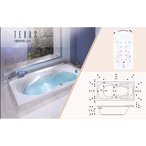 جاكوزي تكساس مستطيل — 180 × 90 سم — فل كامل بمكونات أوروبية