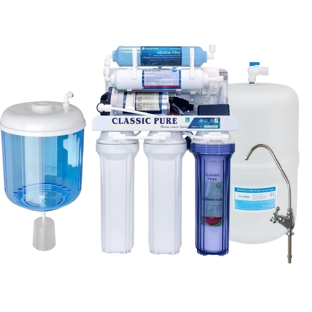نظام 7 مراحل متطور يجمع بين الترشيح الميكانيكي، امتصاص الكلور والمواد العضوية، غشاء التناضح العكسي للحد من الأملاح والملوثات الدقيقة، ومرحلة تكميلية لإعادة المعادن أو تحسين الطعم. مناسب للاستخدام اليومي للأسرة أو المكتب ويوفر مياه شرب آمنة وطازجة.