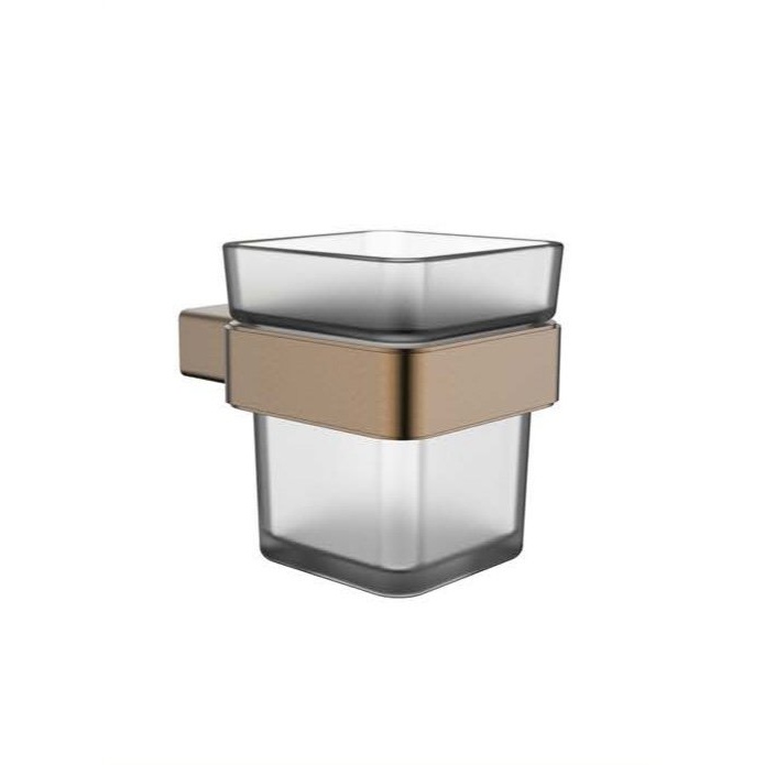 أضف لمسة من الأناقة والتنظيم إلى حمامك مع حامل الأكواب العملي من تريدكس. تم تصميم هذا الإكسسوار العصري لتوفير المساحة والحفاظ على مستلزماتك الشخصية مرتبة وآمنة، مع لمسة نهائية من الكروم ولمسة زخرفية بلون نحاسي تضفي جمالية راقية على الديكور.