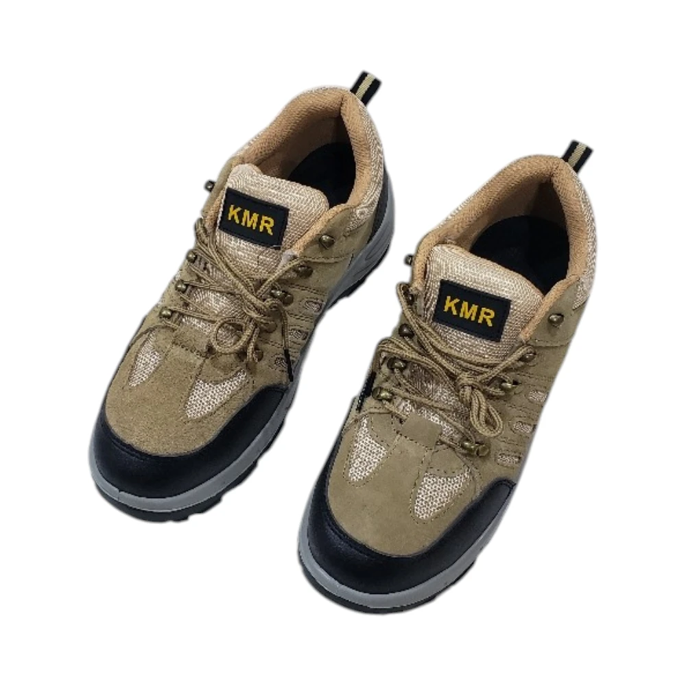 حذاء أمان منخفض بني مقاوم للانزلاق والصدمات – جلد صناعي ببطانة شبكية مريحة | KMR