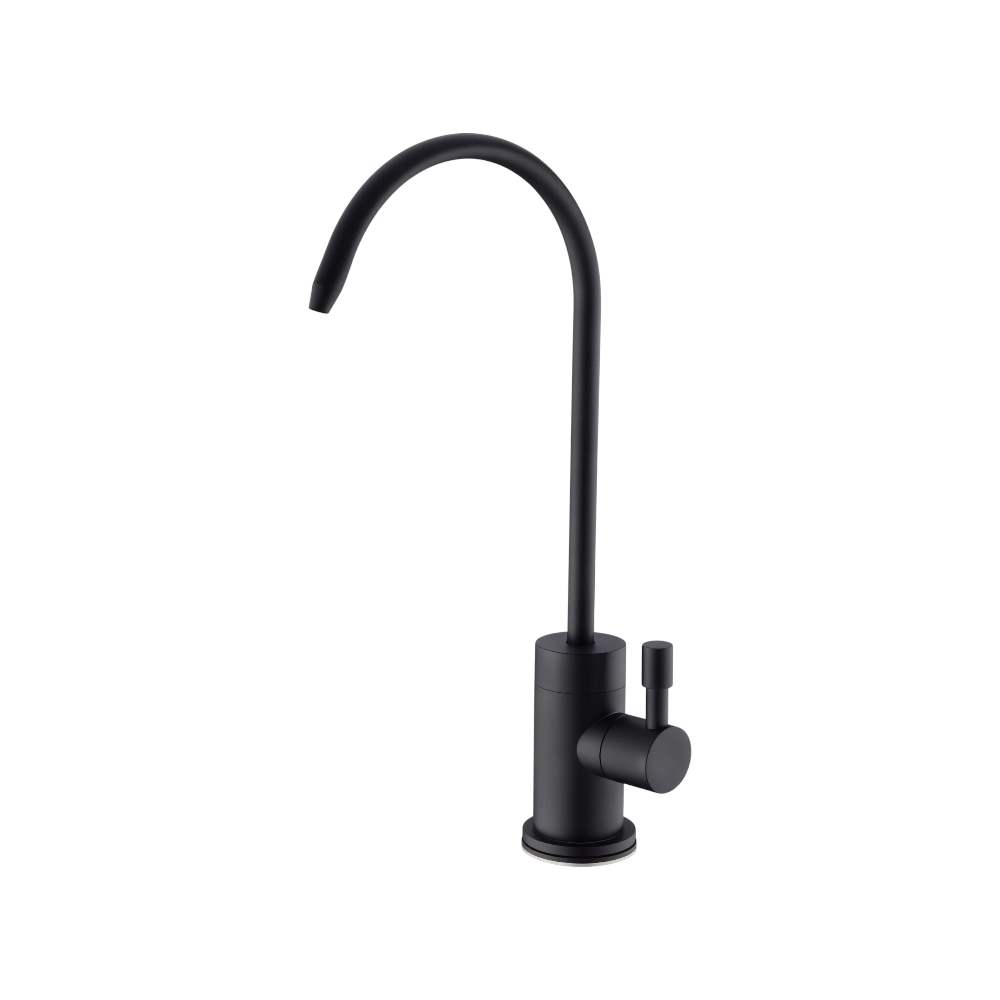 حنفية فلتر بزبوز باللون الأسود، مصممة لتوفير مخرج مياه مفلترة أنيق وعملي في المطابخ الحديثة. تتميز بتصميم بسيط يتماشى مع مختلف أنماط الديكور، مع بزبوز دوّار لمرونة وسهولة الاستخدام وتشغيل سلس.