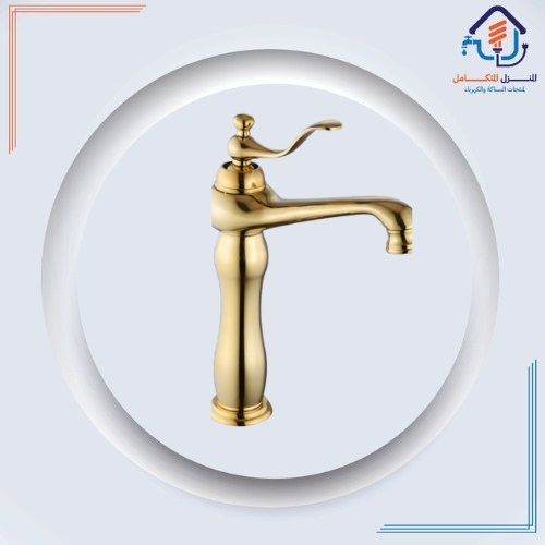 خلاط بطول مناسب ليعلو حافة المغسلة السطحية ويمنح سهولة في الاستخدام ومظهرًا راقيًا. السطح الخارجي بطلاء ذهبي معتق مقاوم للصدأ يضفي رونقًا تقليديًا مع حماية من التآكل والتغير في اللون مع الاستعمال اليومي.