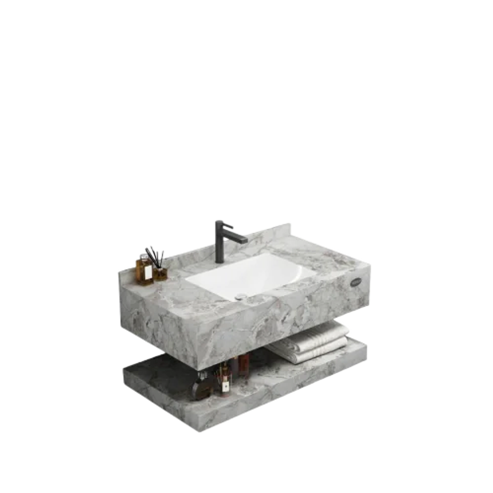 - حوض من البورسلان بتشطيب بديل الرخام لمظهر طبيعي وفخم.