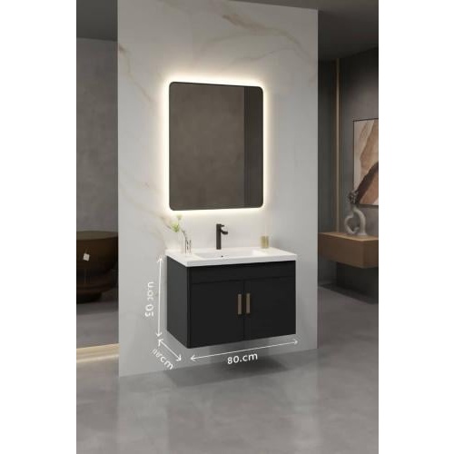 احصل على مظهر متكامل وعملي لحمامك مع طقم مغسلة فيراغو الأسود بعرض 80 سم.
