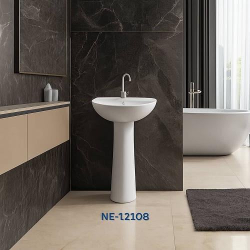 أضف لمسة أنيقة وعصرية إلى حمامك مع هذه المغسلة الأرضية المصنوعة من خزف عالي الجودة. تصميمها القائم بذاته ولونها الأبيض النقي يمنحان الحمام مظهراً نظيفاً ومتناغماً يتناسب مع مختلف أساليب الديكور.
