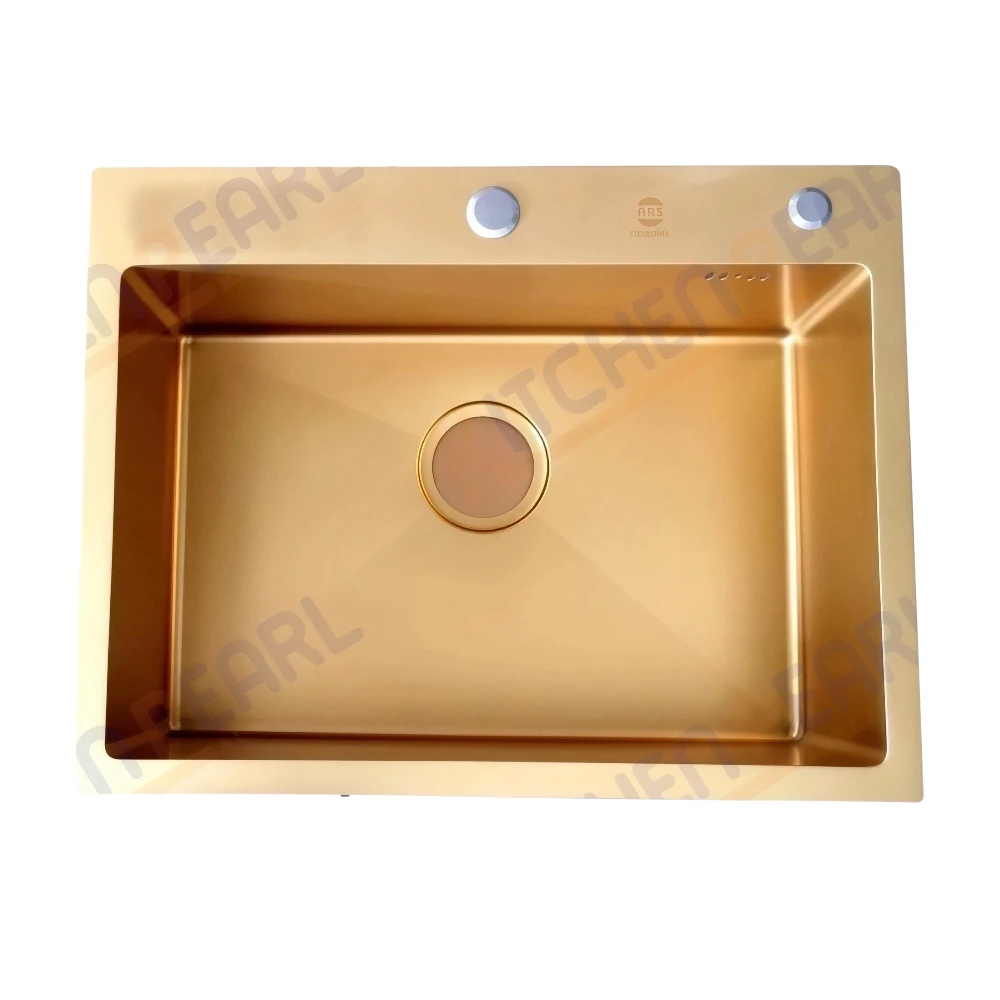 مجلى مطبخ ARS COCINAS — حوض واحد ستانلس ستيل بطلاء ذهبي (65×45×22 سم)