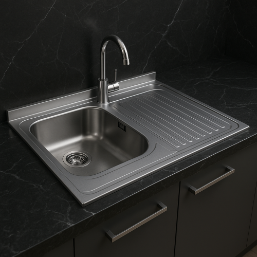 مجلى مطبخ ستانلس ستيل – حوض واحد مع صينية تصريف