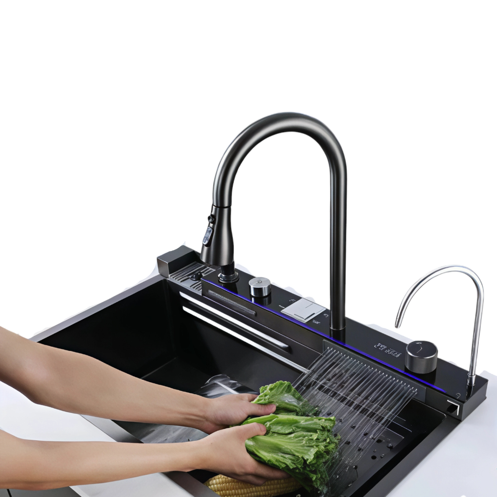 Be the first to review “حوض مطبخ ستانلس ستيل نانو أسود 100×46 سم — تصميم شلال مزدوج عصري فاخر، للاستخدام اليومي وديكور، بسطح SINDBAD مقاوم للخدوش”