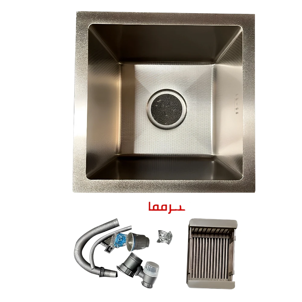 مجلا مطبخ استيل نانو — عين واحدة، بدون فتحة خلاط (35×35 سم)
