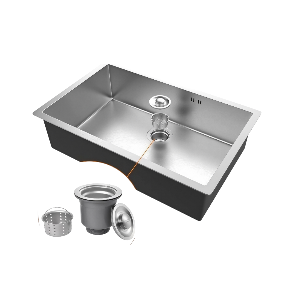 ارتقِ بمظهر ووظائف مطبخك مع حوض المطبخ Ebergriv موديل M87044B. حوض تحت سطح الطاولة مصنوع من استانلس ستيل عالي الجودة بتشطيب فضي لامع، مصمم ليمنح مطبخك مظهرًا أنيقًا ومندمجًا مع سهولة تنظيف عالية وأداء تصريف متميز بفضل فلتر تصريف مدمج.