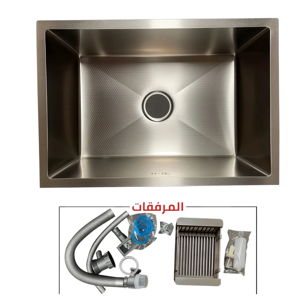 مجلى مطبخ BERBE — ستانلس ستيل 304 نانو مقاوم للخدش (حوض واحد) — 65×45 سم