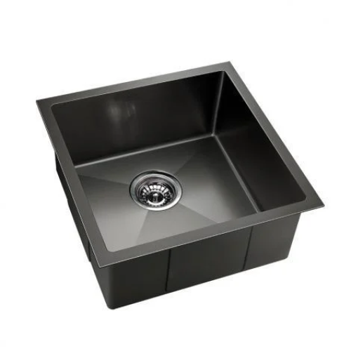حوض مطبخ عصري بتصميم أنيق وطلاء أسود غير لامع يضفي لمسة من الرقي على أي مطبخ. مصنوع من فولاذ مقاوم للصدأ عالي الجودة ليجمع بين المتانة والمظهر المميّز، ومصمّم بدون فتحة للخلاط ليناسب الخلاطات الجدارية أو الخلاطات المثبتة على سطح العمل.