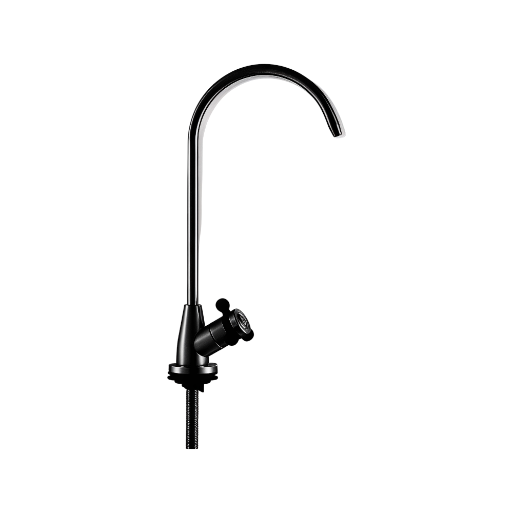 بزبوز حنفية الفلتر باللون الأسود مصمم ليكون مخرجًا مخصصًا للمياه المفلترة، مع مظهر عصري يتناسق مع المطابخ الحديثة. يوفّر هذا البزبوز فصلًا واضحًا بين مياه الشرب النقية ومياه الاستخدام العام للحنفية، مما يسهل الحصول على مياه معقّمة وطازجة مباشرة من الحنفية.