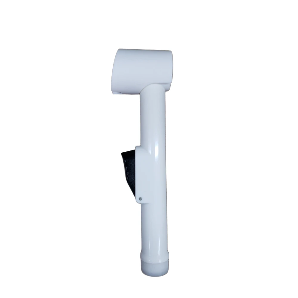 رأس شطاف يدوي من KANA بتصميم عملي وأنيق باللون الأبيض، مصمم للاستخدام مع أنظمة الشطاف في دورات المياه. يتميز بمقبض مريح وزر تحكم جانبي يسمح بتشغيل وإيقاف تدفق المياه بسهولة لتحكم أفضل أثناء الاستخدام.