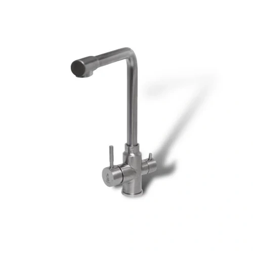 خلاط مجلى عملي وأنيق يجمع في وحدة واحدة ثلاث وظائف: مياه ساخنة، مياه باردة، ومياه مفلترة. تصميمه المصقول من الستانلس ستيل يمنح المطبخ مظهراً معاصراً ومتانة طويلة الأمد مع أداء موثوق.