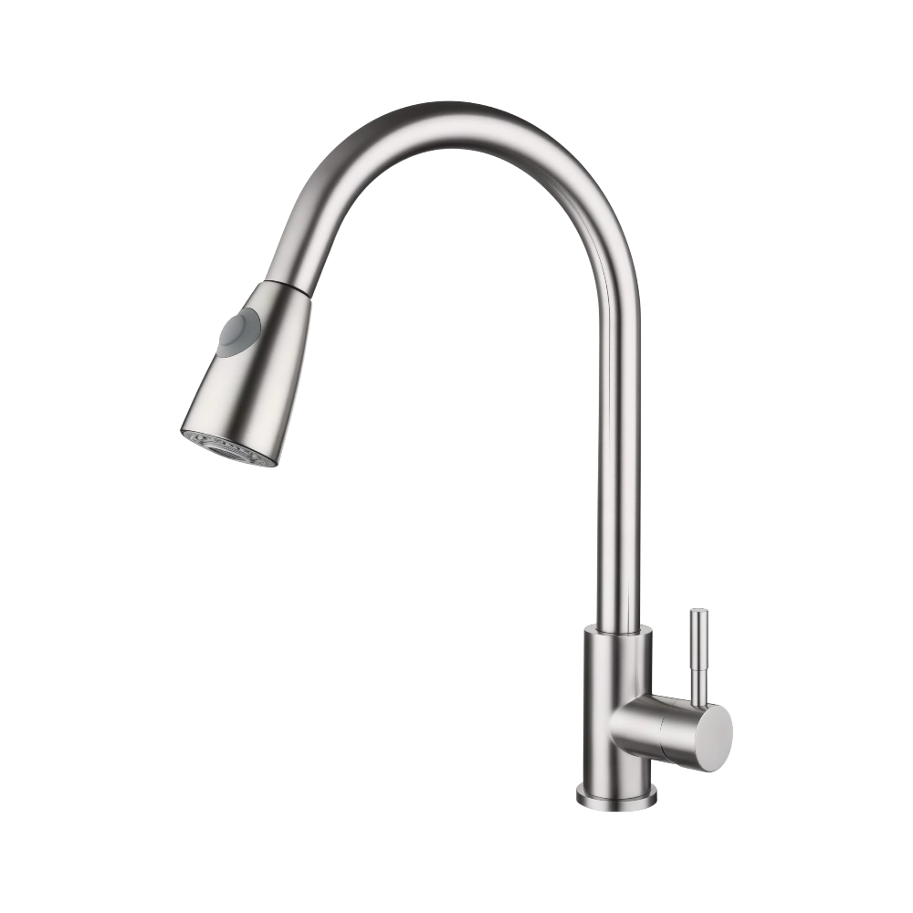 صنبور مطبخ سحب لأسفل بمقبض واحد — كروم لامع قياسي وفوهة مرنة | SINDBAD تصميم عصري متين