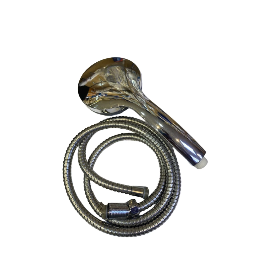 طقم سماعة دش يدوي عملي وأنيق مزود بخرطوم من الستانلس ستيل بطول 1.5 متر وحامل جداري قابل لتعديل الارتفاع. صُمم للاستخدام اليومي في الحمامات المنزلية ليمنحك راحة أكبر أثناء الاستحمام وتحكماً مرناً في اتجاه وموقع المياه.