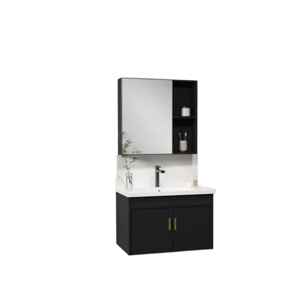 جدد حمامك بمغسلة فيراغو العصرية المصنوعة من فايبر مقاوم للماء. تصميم أنيق باللون الأسود يجمّع بين الجمال والوظيفة، حيث تأتي الوحدة مع خزانة تخزين عملية ومرايا مدمجة لتوفير مساحة وترتيب مثاليين.