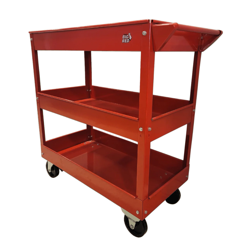 احصل على تنظيم أفضل ومرونة في تحريك أدواتك مع عربة أدوات فولاذية 3 طبقات بعجلات من بيج ريد – TC302.