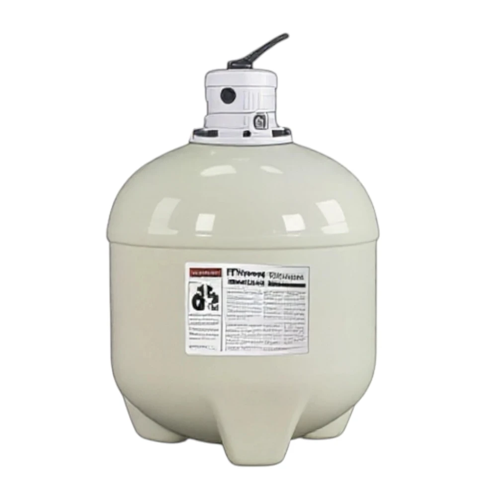 فلتر ساند سلفر مقاس 24 بوصة مصمم لتوفير ترشيح ميكانيكي فعّال لمياه المسابح. يعمل النظام على إزالة الشوائب والجزيئات العالقة باستخدام وسط ترشيح من الرمل، ويقدّم أداء موثوقاً للحفاظ على مياه نظيفة وصافية مع هيكل قوي ومتين باللون البيج.
