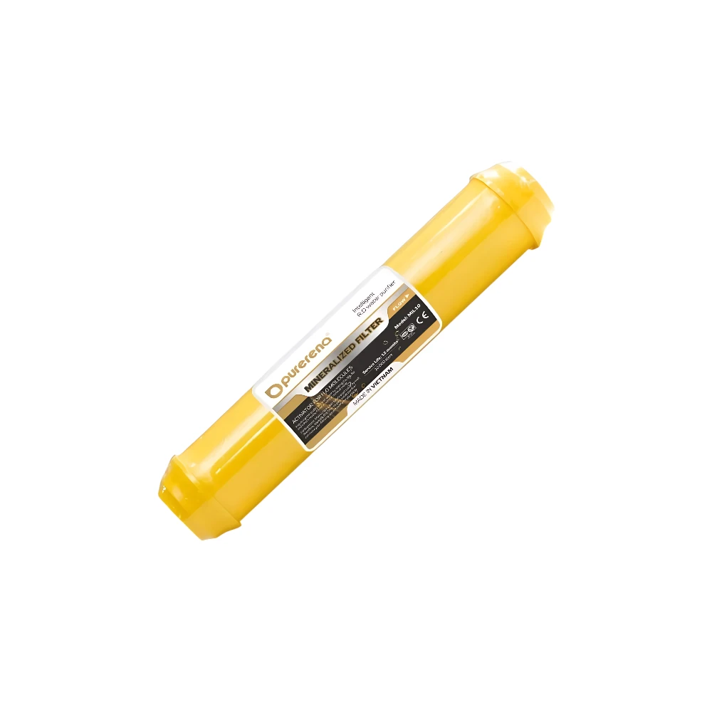 يحتوي الفلتر على وسط معدني أو مزيج من المواد المعدنية التي تتفاعل مع الماء المقطر أو منخفض المعادن لتمرير أيونات مفيدة تدريجيًا إلى الماء أثناء تدفقه عبر خرطوشة الفلتر، دون إضافة مواد كيميائية ضارة.