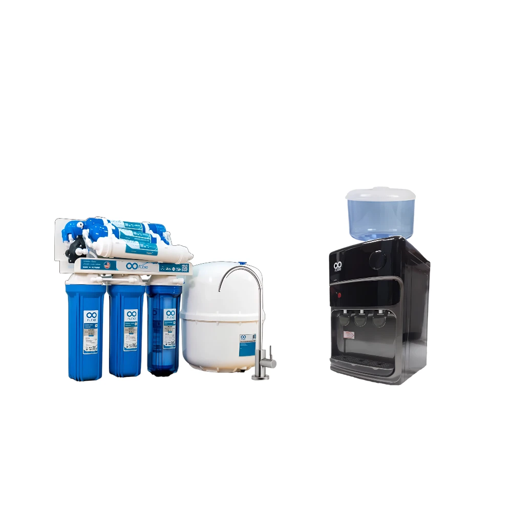 نظام متكامل لتنقية وتحلية المياه من فلكسو يمنحك مياه شرب نقية وصحية مباشرة في منزلك أو مكتبك. يجمع هذا الحل بين تقنية التناضح العكسي المتقدمة بسبع مراحل وتركيب برادة طاولة مدمجة لتوفير مياه معقمة وطازجة جاهزة للاستهلاك.