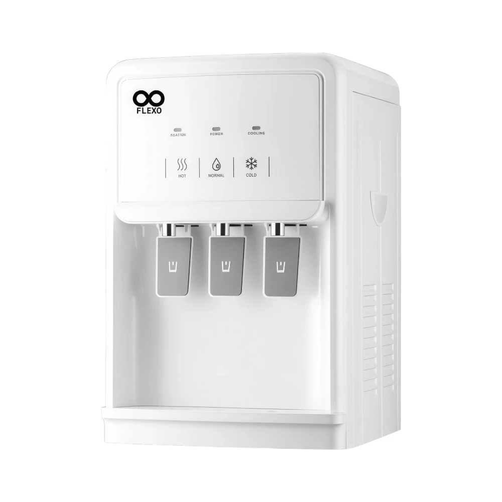 برادة مياه فلكسو الأنيقة والمدمجة لسطح الطاولة، تقدم مياهًا نقية ومنعشة بسهولة، مناسبة للاستخدام في المنزل أو المكتب. تجمع البرادة بين تصميم بمساحة صغيرة وأداء عملي يسمح بالحصول على ثلاث درجات حرارة مختلفة بضغطة زر أو استخدام صنابير مستقلة: ماء حار، ماء بارد، وماء بدرجة حرارة عادية.