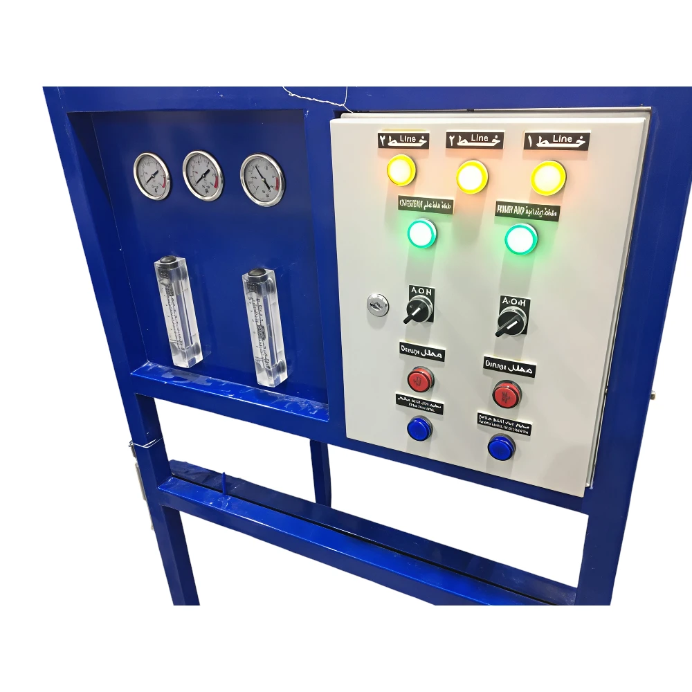 • لوحة تحكم PLC وشاشة عرض لمؤشرات TDS، ضغط التشغيل ومستوى الخزانات.