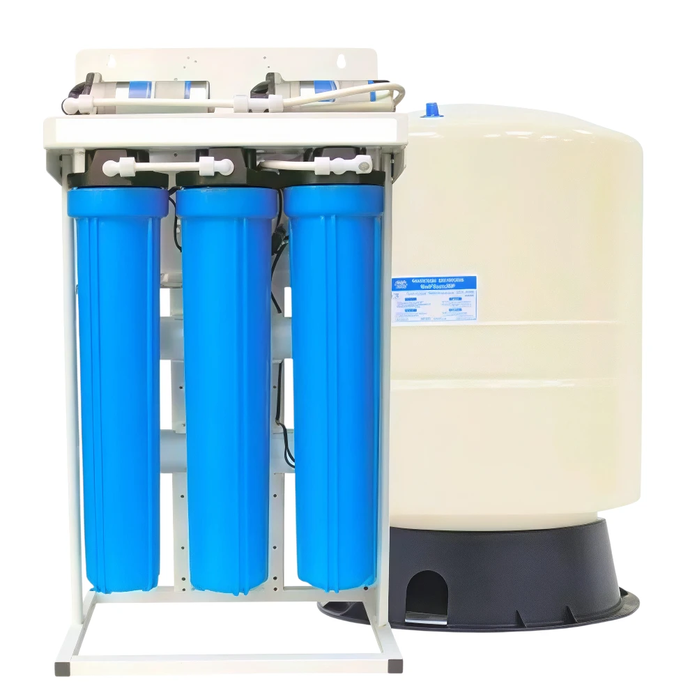 - قدرة إنتاجية عالية تصل إلى 400 جالون/يوم (≈1,514 لتر/يوم)، مناسبة للمطاعم، الكافيهات، فنادق صغيرة، ومنازل ذات استهلاك مرتفع.