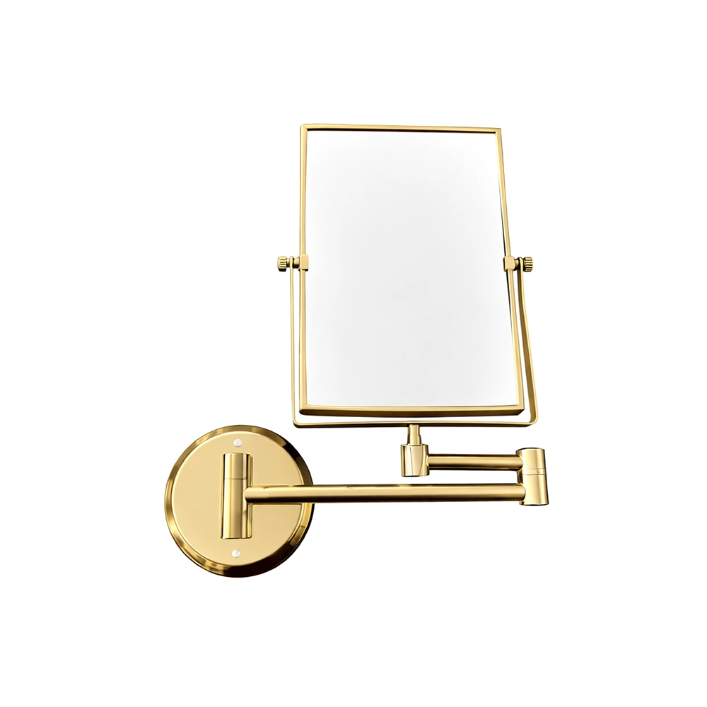 مرآة مكبرة بذراع ثابت للتثبيت على الحائط — تصميم مربع بلون ذهبي