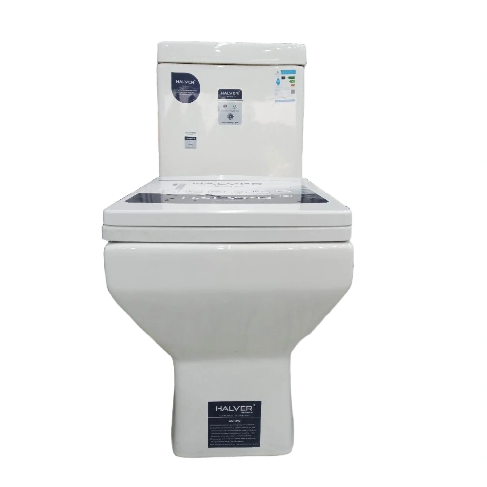 مرحاض أرضي سيراميكي بخزان علوي ومقعد — مخرج خلفي 300 مم — HALVER