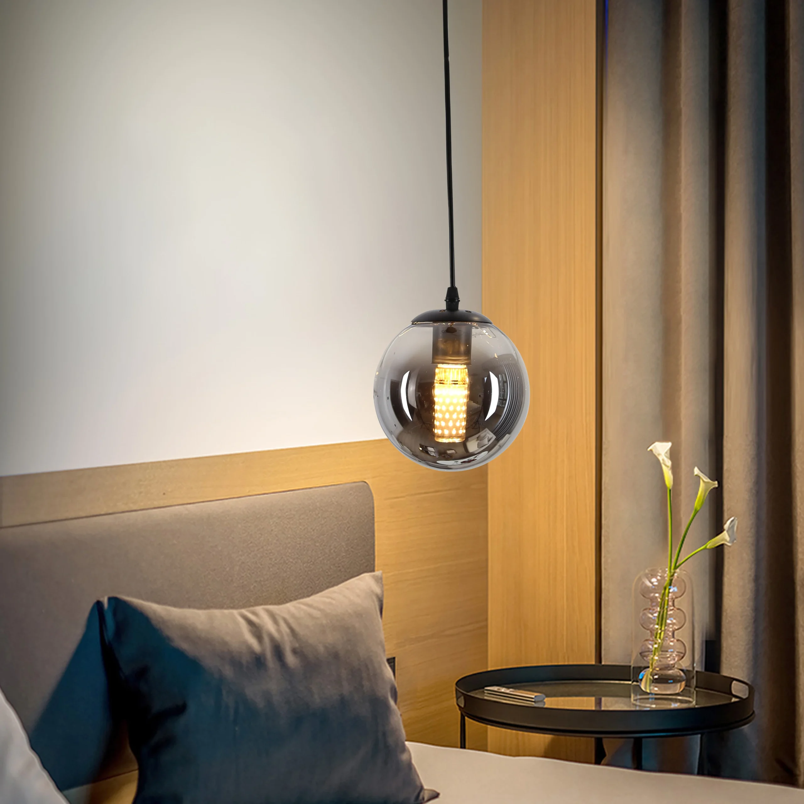 مصباح معلق عصري بلون أسود أنيق، مصمم لحمل لمبة واحدة بمقبس E27. حل مثالي لتجديد الإضاءة في الصالات، المطابخ، ممرات المدخل أو فوق طاولات الطعام لإضاءة مركزة وأناقة معاصرة.