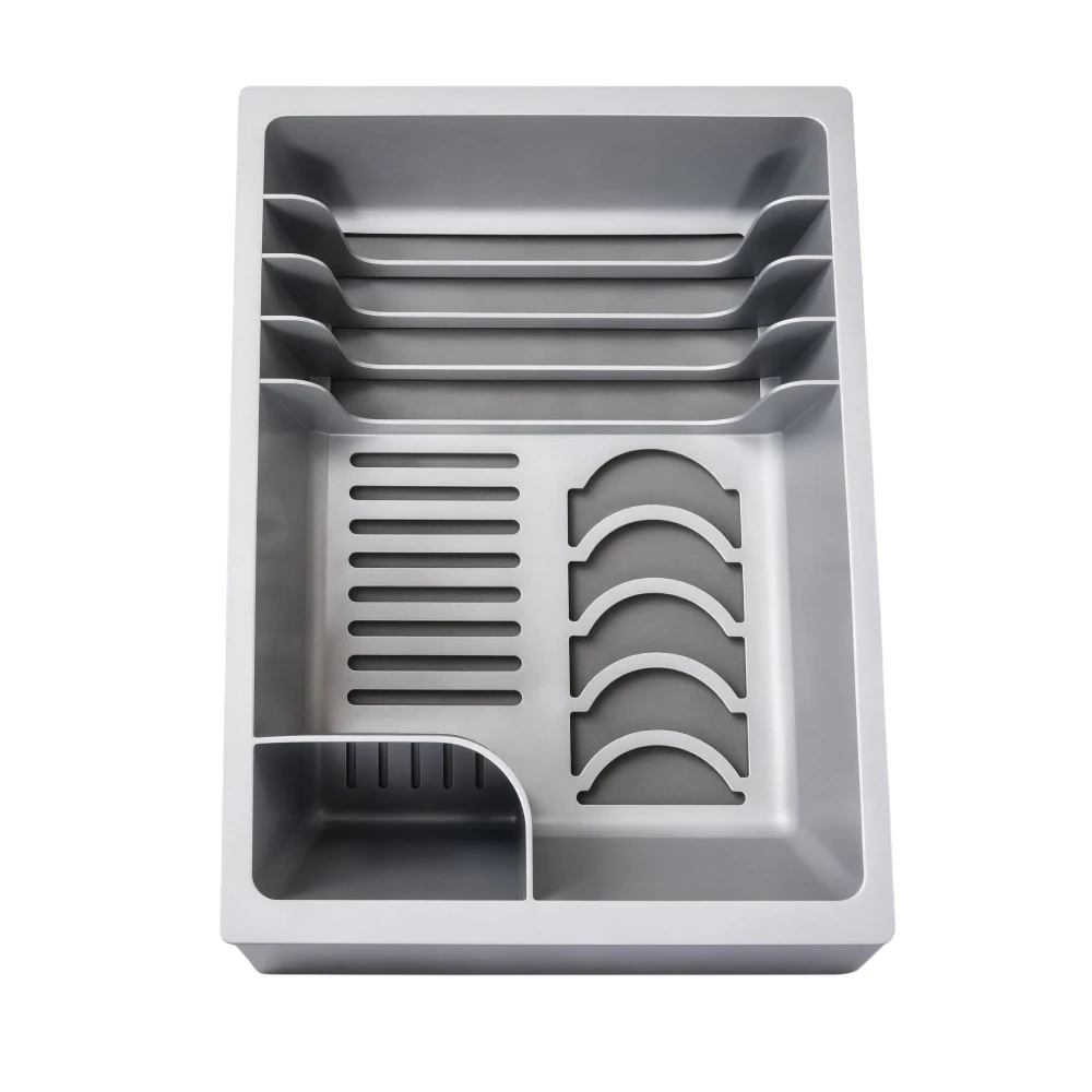 • حجم مناسب لاحتواء عدد جيد من الصحون دون إشغال مساحة كبيرة في الحوض.