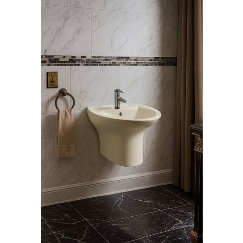 جدد حمامك مع مغسلة جدارية معلقة بلون بيج أنيق وتصميم معاصر يجمع بين الجمال والعملية. تضيف لمسة فاخرة إلى المساحة وتستغل الجدران لتوفير مساحة أرضية وبناء مظهر نظيف ومنظم يناسب الديكورات العصرية والكلاسيكية على حد سواء.