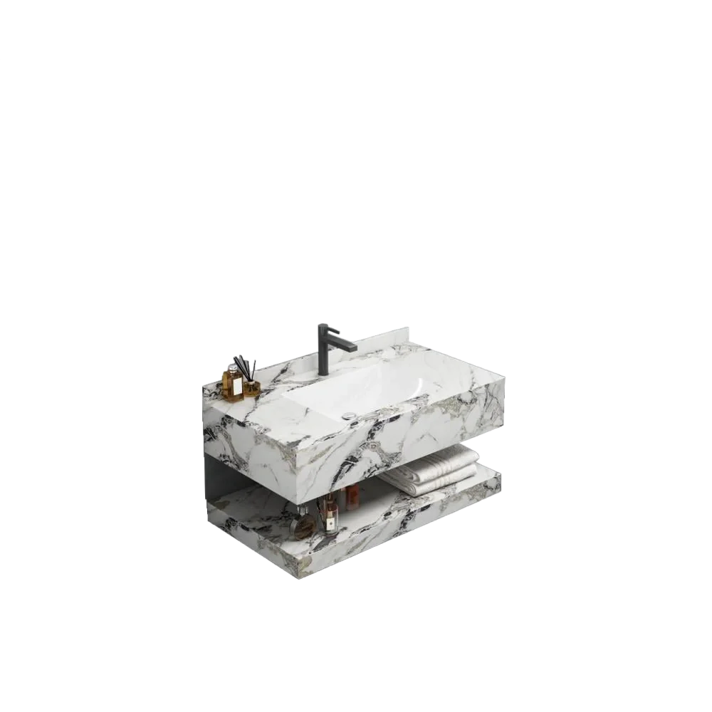 • وحدة المغسلة (حوض وجسم الرخام الصناعي).