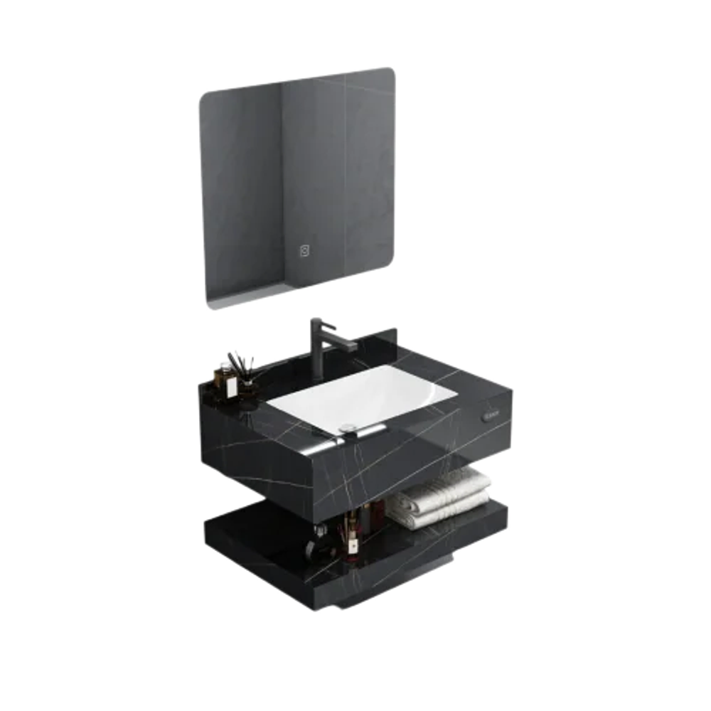 مغسلة رخام اصطناعي مع مرآة LED – VERAGO – أسود – عرض 60 سم