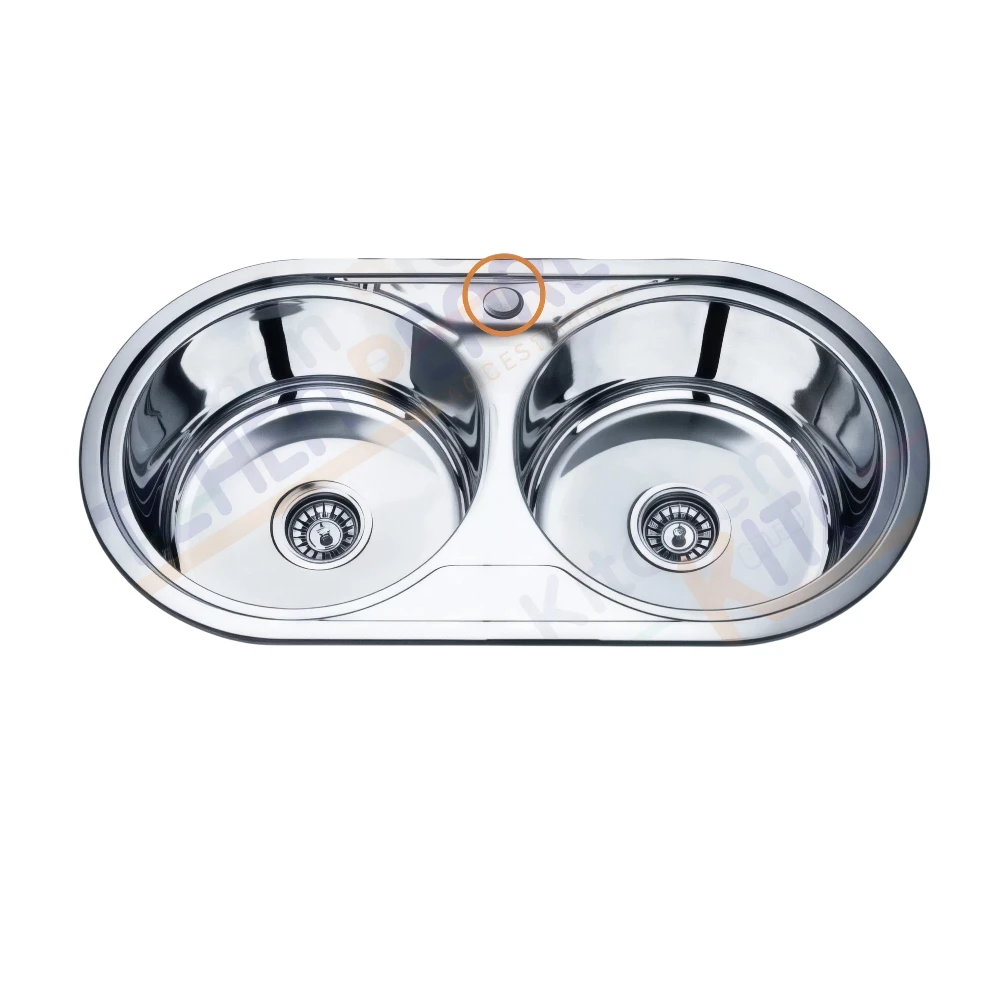 مغسلة مطبخ ستانلس ستيل بعينين دائريتين — للتركيب في الرخام (درجة 304) — مقاس 84×44 سم