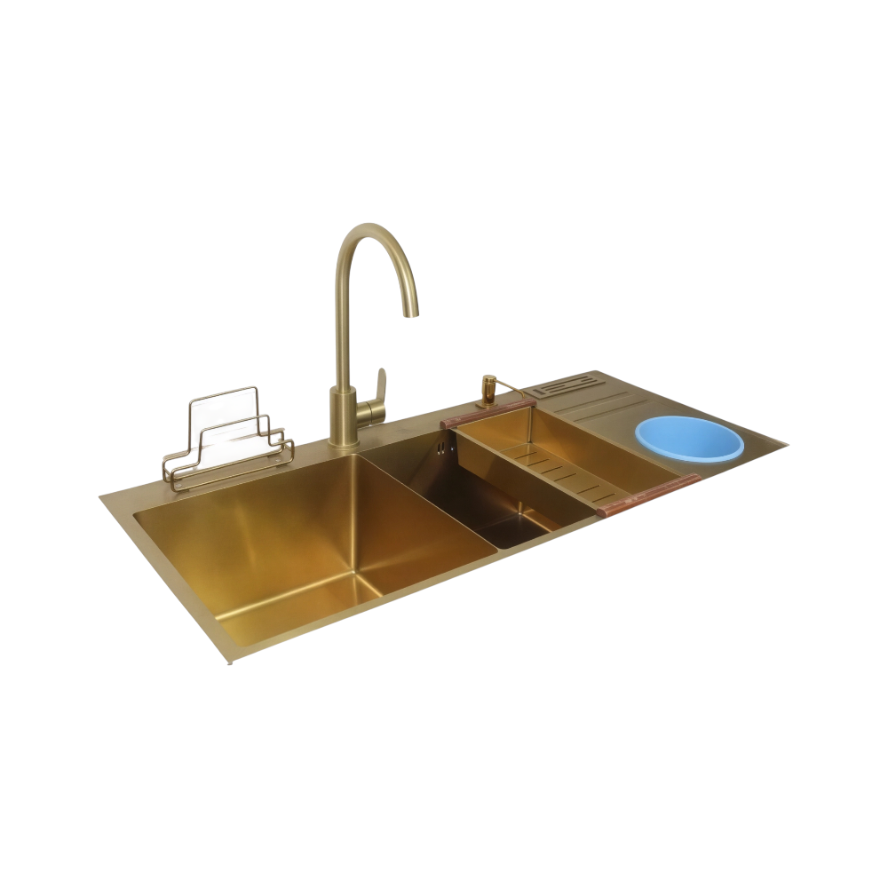 مجلى مطبخ استانلس ستيل نانو ذهبي مقاس 100×45 سم (سماكة 3 مم) — SINDBAD