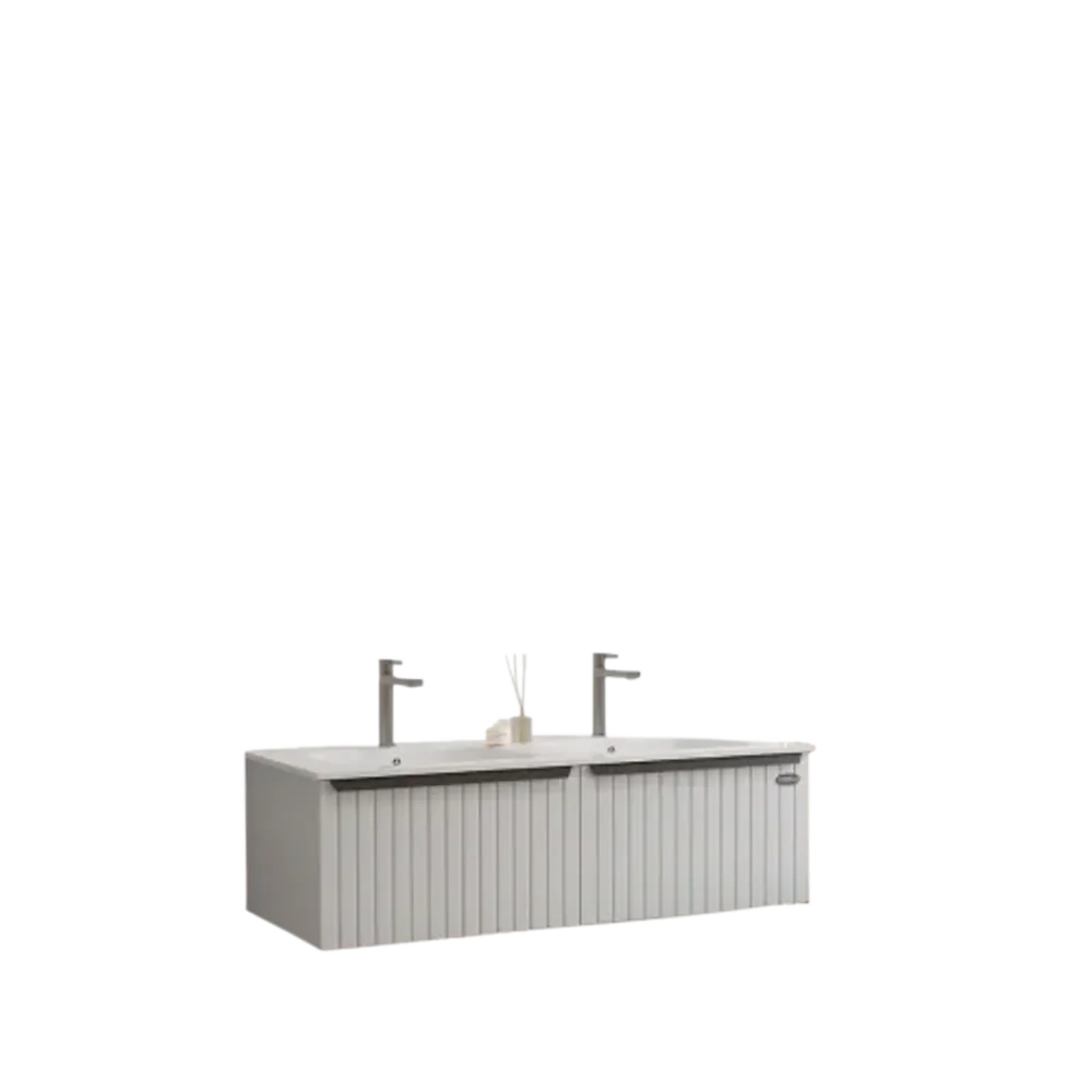 Be the first to review “وحدة مغسلة حمام من خشب بلايوود بحوضين سيراميك ومرايا LED — فيراجو 120 سم”