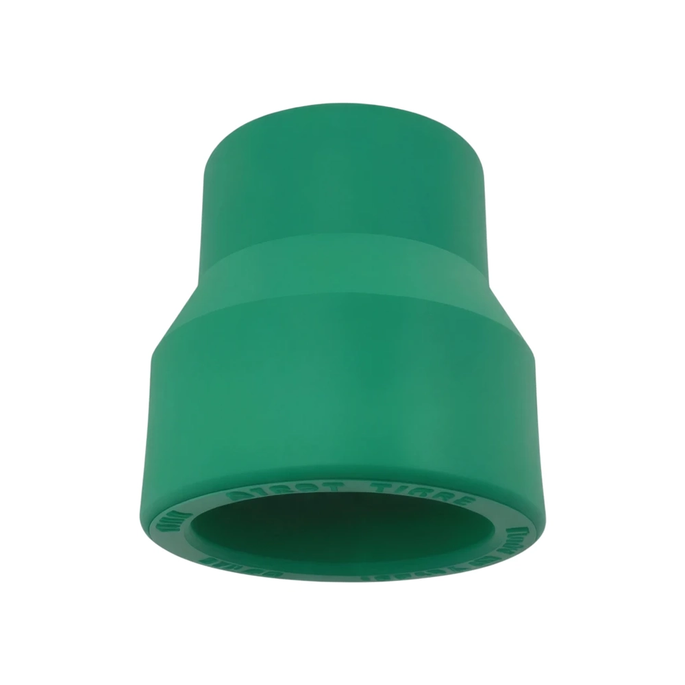جلبة مخفضة (جلبة نقاصة) مصنوعة من بولي بروبلين (PPR) باللون الأخضر، تُستخدم لربط أنبوبين بمقاسين مختلفين (32 مم إلى 25 مم) في شبكات المياه المنزلية والصناعية الخفيفة.