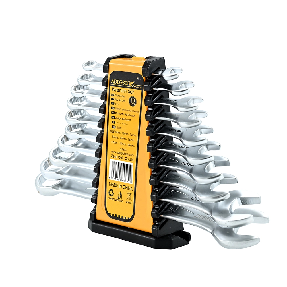 ADEGSO Double Wrench Set — 10 Pieces (8–24 mm) with Organizer Holder, Model AD-50133ADEGSO Double Wrench Set — 10 Pieces (8–24 mm) with Organizer Holder, Model AD-50133