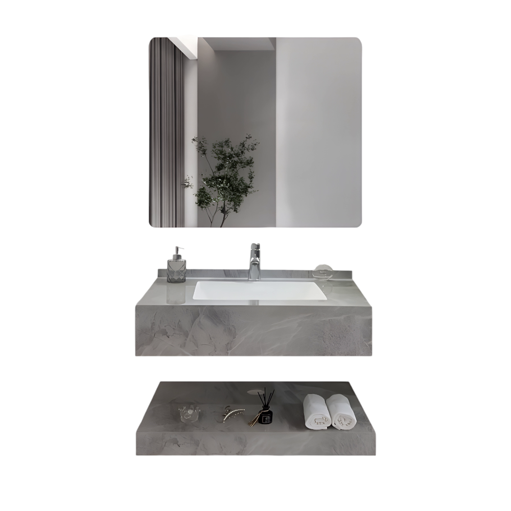Laser-cut bathroom sink – dark gray, 80 cm with LED mirror and shelf | HERO