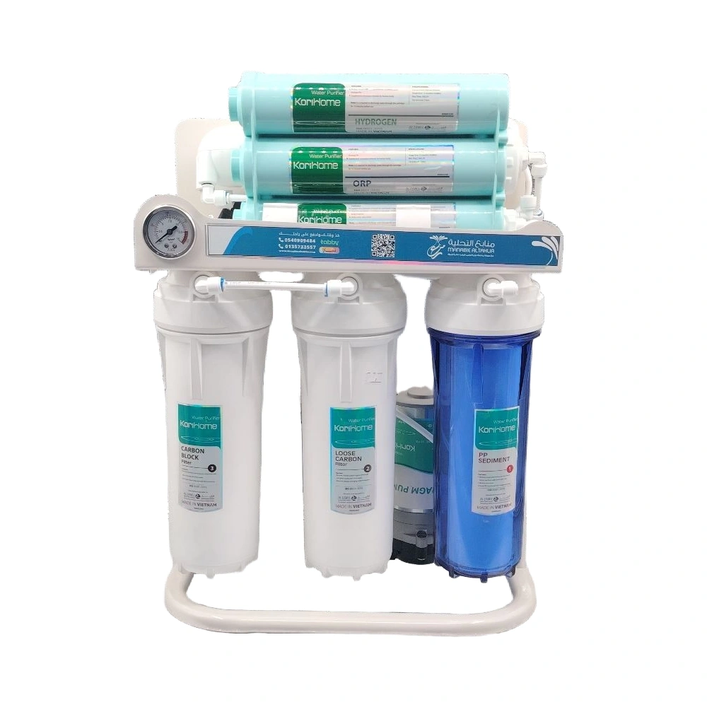 The Kori Home water purifier offers a complete solution for obtaining pure and healthy drinking water directly in your home. The system utilizes advanced reverse osmosis (RO) technology, enhanced with additional stages for hydrogen addition and Oxidation-Reduction Index (ORP) adjustment, to provide you with purer, clearer, and better-tasting water.