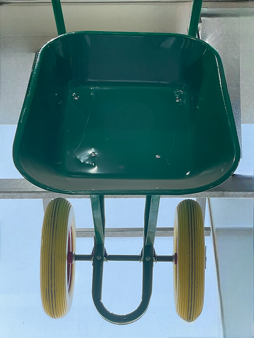 عربة بناء يدوية صنع وطني، مصممة لتحمّل ظروف العمل وتسهيل النقل والتحميل في المواقع المختلفة. مزوّدة بكفرين ربل (فووم) لاستدامة أطول وتقليل أعطال الإطارات — بمشيئة الله.