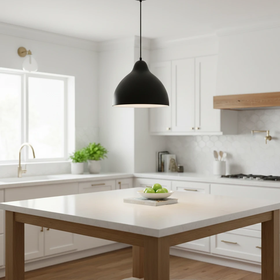 This modern pendant chandelier reflects the beauty of simplicity and gives your home elegant and sparkling lighting. Its black and white design creates a contemporary balance that suits various home décor styles.