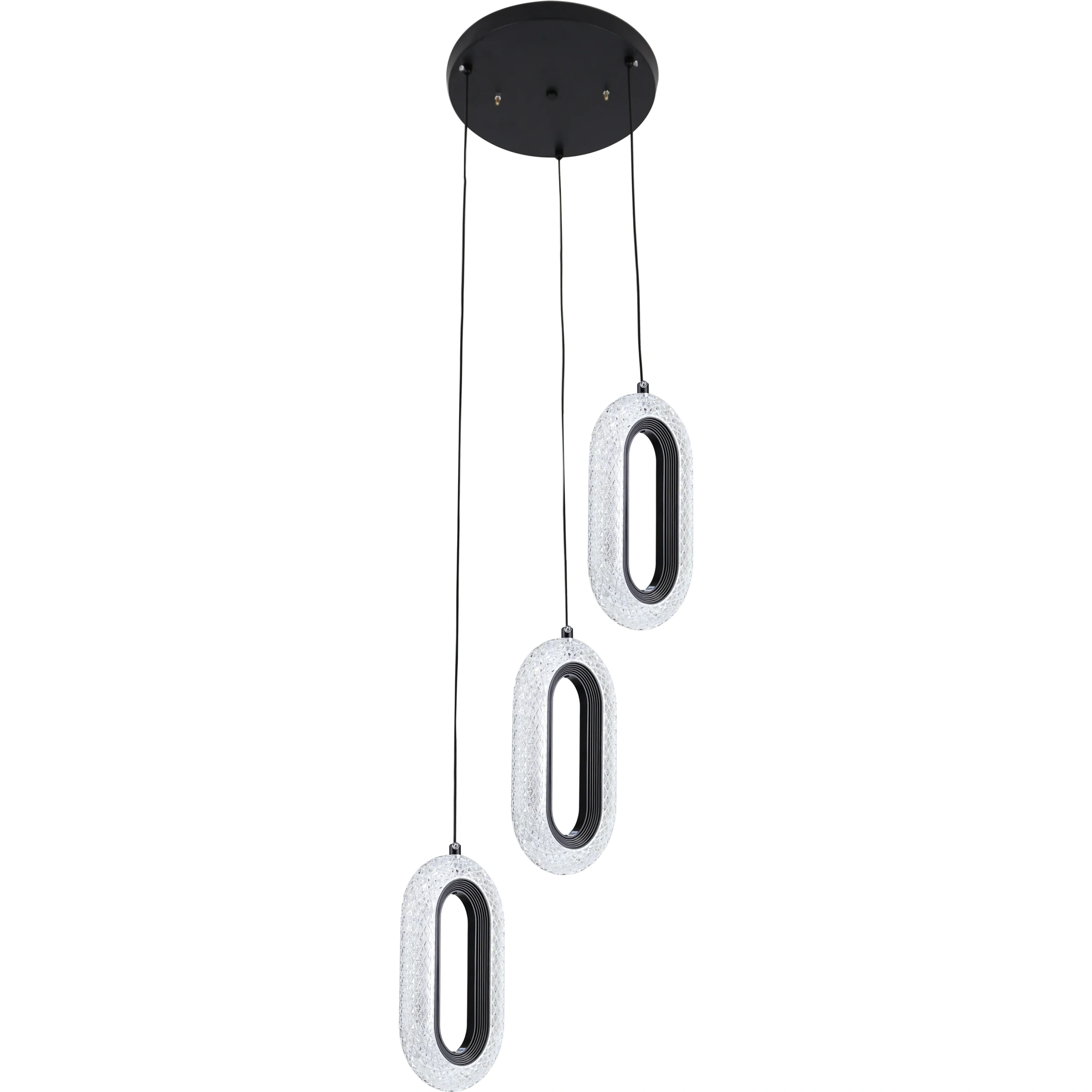 Order now and add a modern touch to your home lighting with a modern black chandelier with three efficient and energy-saving lights.