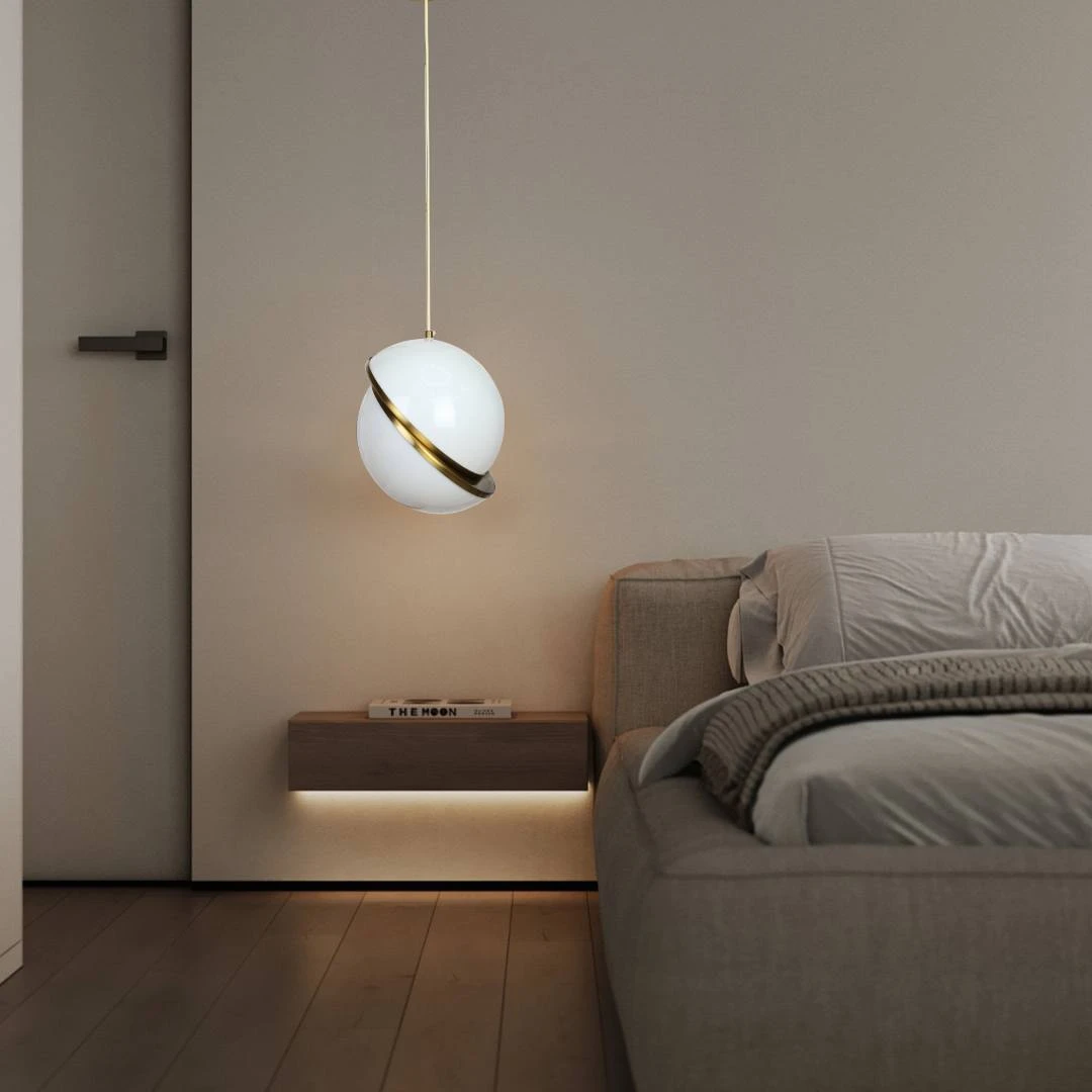 A single, elegant light fixture adds balance and beauty between walls and furniture, ideal for living rooms, hallways, or over small dining tables.